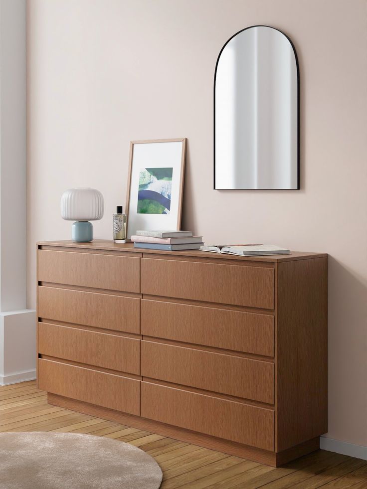 Las cómodas no solo son útiles para guardar objetos o ropa, también sirve para usarla como algún tipo de estante donde puedes colocar accesorios por la parte de arriba y así aprovechar mucho más de ella.