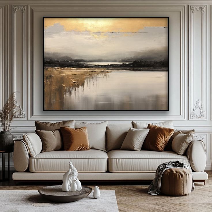 Uno o varios cuadros para sala pueden convertirse en el punto central de atención de nuestro espacio. Generalmente se ubican sobre el sofá más grande, un mueble o consola o sobre la chimenea.